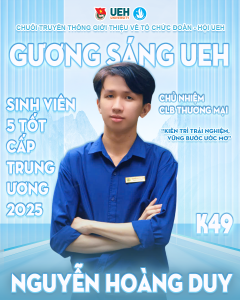 Trong cộng đồng UEH cũng như CLB Thương Mại, Nguyễn Hoàng Duy được biết đến là một sinh viên năng động, nhiệt huyết và giàu